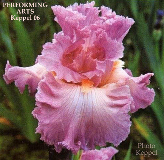 S. pinkish orchid; F. pinkish orchid, paler center; beards melon, white at end.
