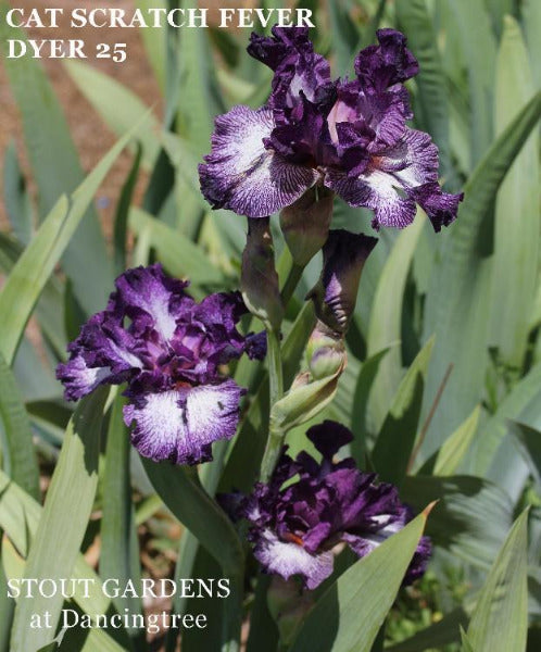 Another unique space-ager from Perry! Well branched and strong growth in beautiful dark purple plicata patterned tones. Oklahoma bred.